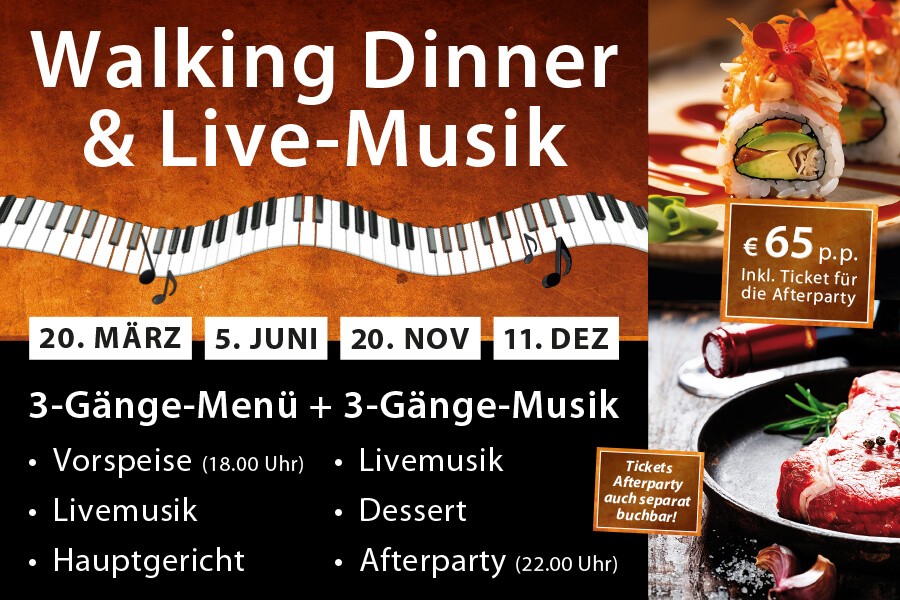 Livemusik in der Kombination mit einem 3. Gänge Walking Dinner